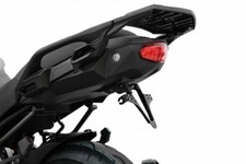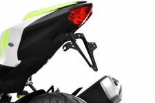 Les supports de clignotants de l'AKRON-RS PRO sont réglables en largeur et conviennent donc à tout type de clignotant accessoire. Cette option de réglage vous permet d'adapter la position de vos clignotants à une grande variété de plaques d'immatriculation. Pour permettre l'installation des clignotants sans les séparer du faisceau de câbles, les trous de 8 mm sont fendus sur le côté. Afin de visser solidement la plaque d'immatriculation et de réduire les vibrations, deux rondelles en caoutchouc sont incluses dans la livraison. Un autre tampon en caoutchouc soutient la plaque d'immatriculation sur sa face inférieure. Cette version PRO de l'AKRON-RS comprend le très petit éclairage de plaque d'immatriculation HIGHSIDER fraisé en aluminium de haute qualité avec plaque de montage et bras de su.