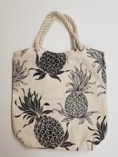 Sac Cabas en Toile Blanc Cassé et Véritable Cuir Marron 30x29cm NEUF+ETIQUETTE