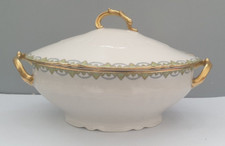 Porcelaine de LIMOGES (frise vert & or) Lot x6 assiettes creuses (très bon état)