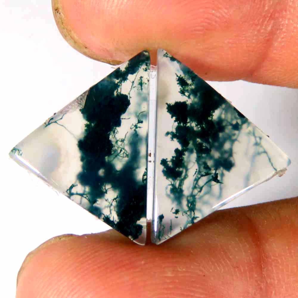 12.10Cts. Paire fantaisie en agate mousse verte 100 % naturelle cabine 13 x 1...