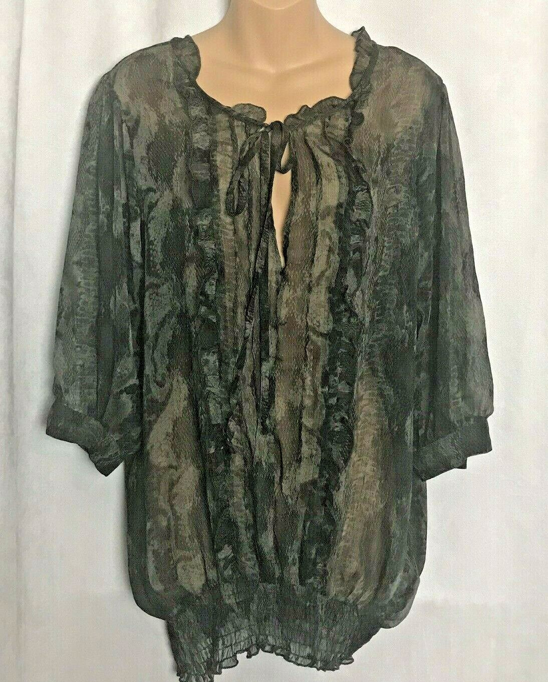 Sam & Max Green & Black Snake Skin Pattern Sheer Tunic Size 1X