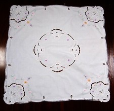 NAPPE carrée 79 x 79cm en COTON blanc brodé à la main Années 1960 en TBE Occ.