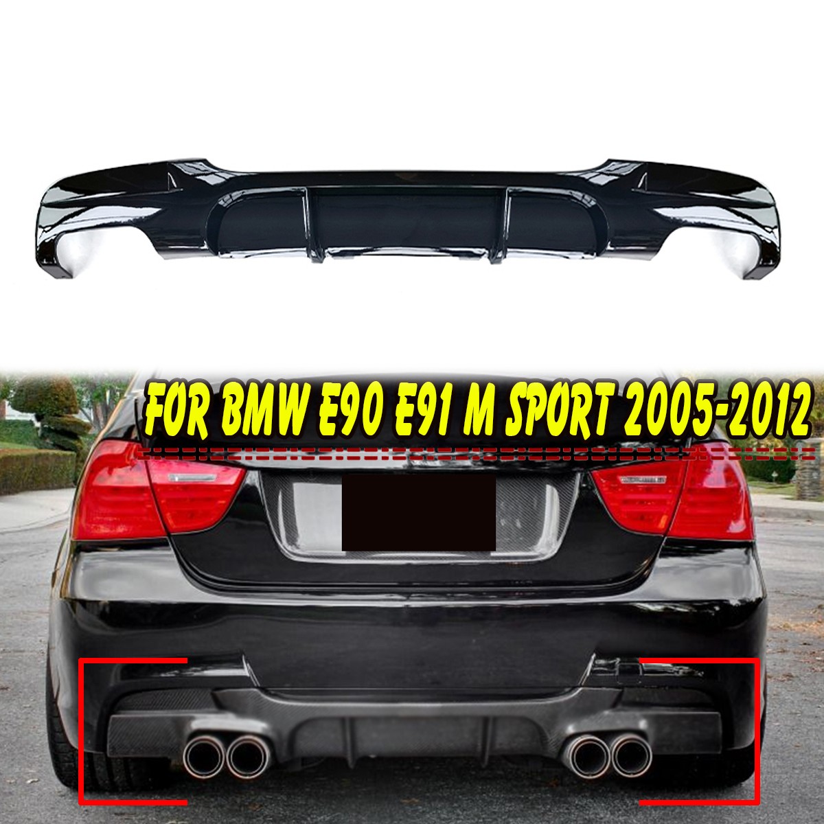 Pour BMW E90 E91 M Sport 2005-2012 Diffuseur de pare-chocs arrière noir brillant. Pour BMW E90 E91 M Sport 2005-2012. Couleur :Noir brillant. 100% tout neuf.