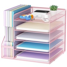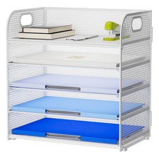 ●【Organiseur de bureau multifonctionnel】L'organiseur de bureau présente un design à 5 niveaux et une grande capacité. Notre plateau à lettres à 5 niveaux, doté de 5 plateaux spacieux, offre un ample espace de rangement idéal pour accueillir des lettres, du papier A4, des livres, des factures, des magazines, du courrier, des dossiers, des carnets et bien plus encore. 【Design unique】Notre organisateur de plateaux à lettres dispose d'une conception avec poignées portatives et plateaux coulissants. Les poignées portatives permettent une mobilité facile, vous pouvez donc le placer où bon vous semble. Le plateau coulissant améliore la praticité, permettant de retirer et de remettre les fichiers facilement à tout moment, augmentant ainsi la productivité grâce à un bureau désencombré.