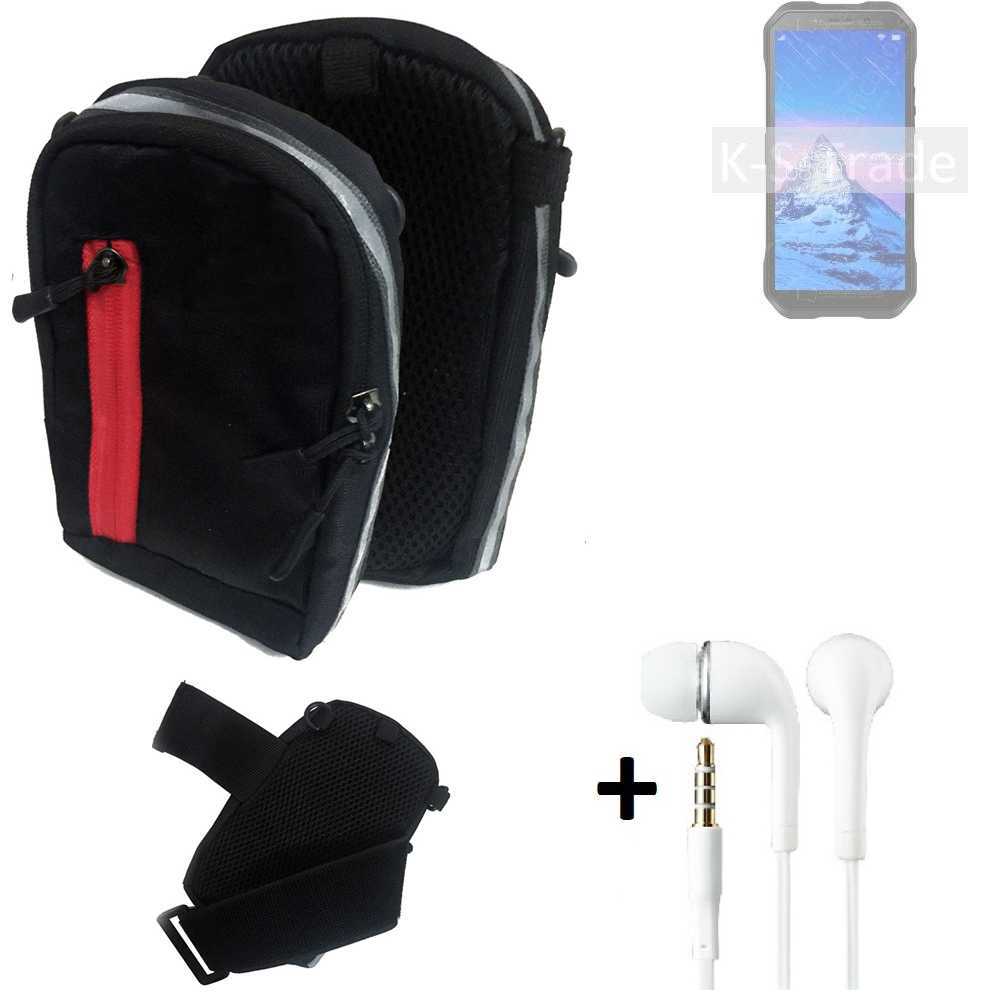 K-S-Trade Sac à bandoulière étui de ceinture + écouteurs compatible avec Doogee S61 Pro mallette transport protection saccoche couvercle sac noir pour téléphone portable 1x. La ceinture et le ruban de fixation sont inclus.