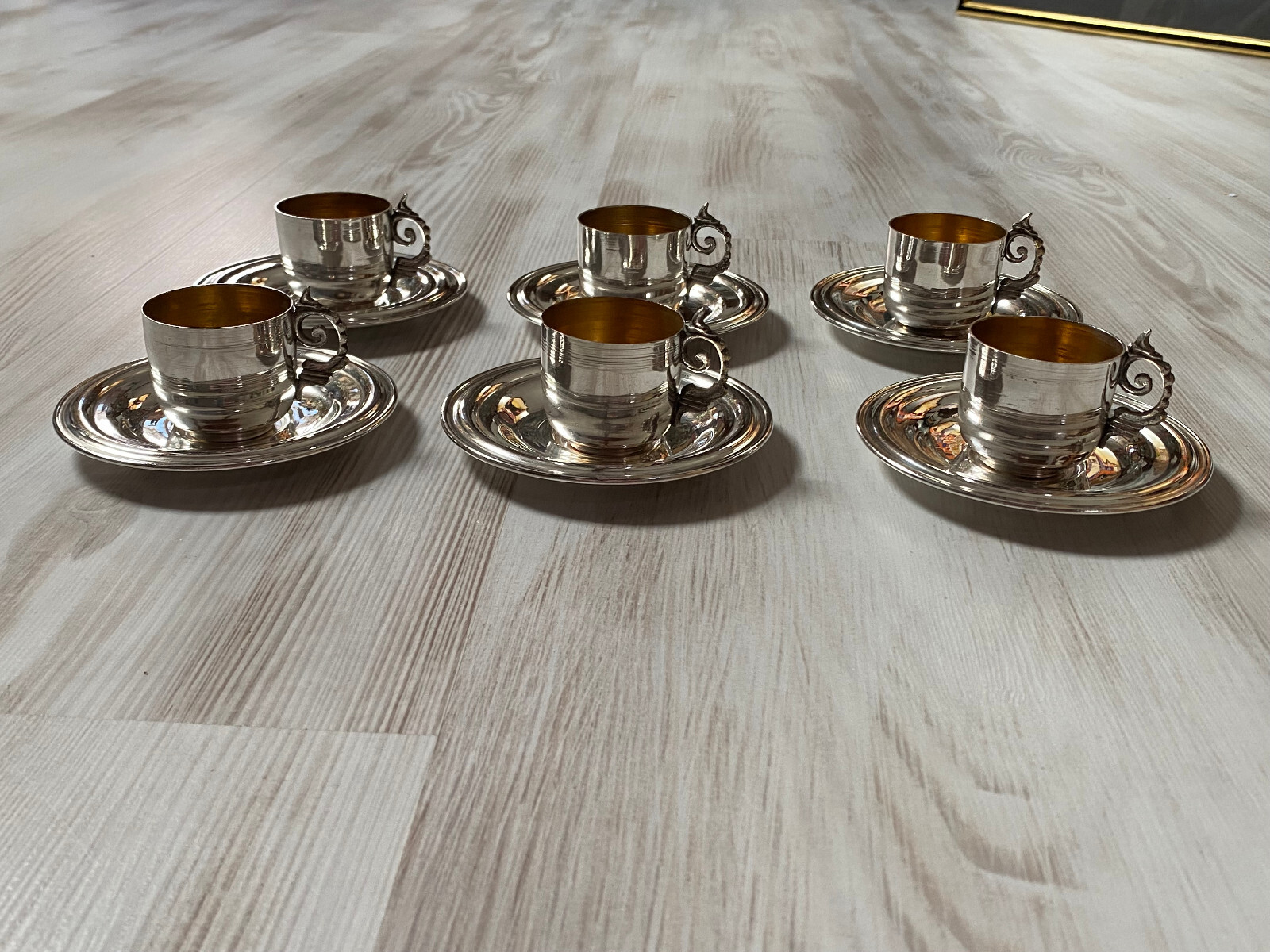Lot de 6 tasses et ses 6 sous-tasses en métal argenté