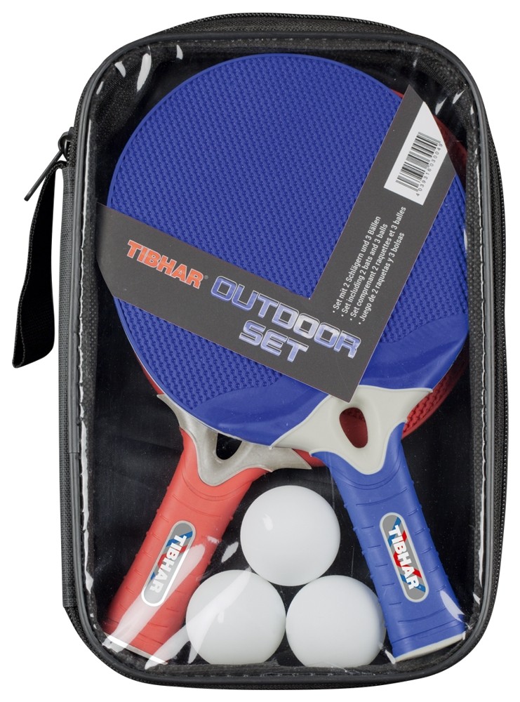 Set Outdoor (2 raquettes). 2 raquettes imperméables en bleu et rouge. y compris 3 balles extérieures (sans celluloïd)Kit de loisirs 1 (4 raquettes d'intérieur). 4 raquettes d'intérieur : 2 x Fun orange Edition, 2 x Rookie blue Edition.