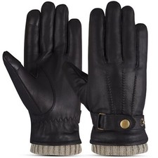 Gants d'hiver en cuir pour hommes Gants de conduite en peau de mouton doux do...