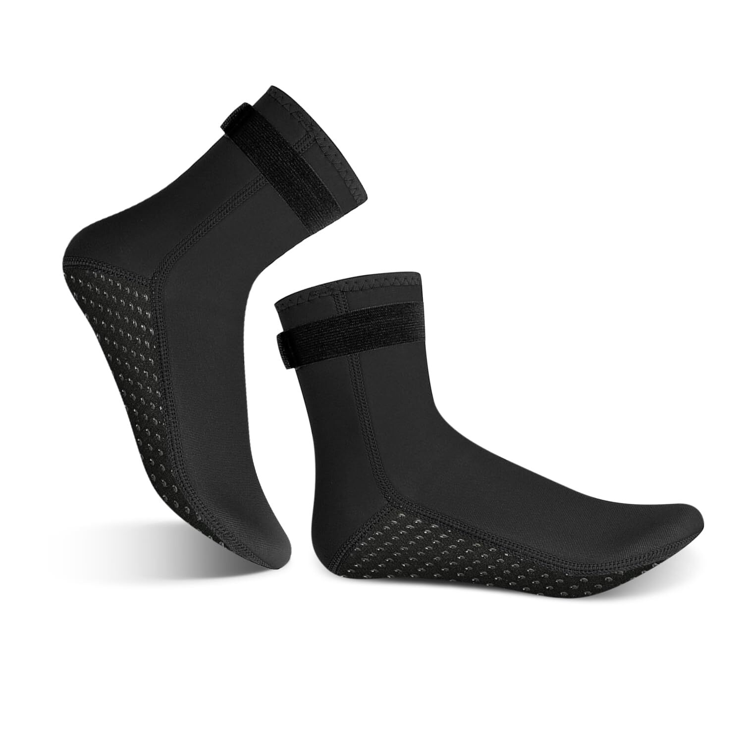 ●✅ Matériau : ces chaussettes de plongée sont principalement fabriquées en néoprène de 3 mm d'épaisseur. Le tissu est confortable, doux et délicat, élastique, finement cousu, durable et durable et donne à vos talons un confort optimal. ✅ Design étanche : la manchette de ces chaussettes de plongée dispose d'une sangle collante qui entoure fermement votre cheville et la sangle se verrouille pour empêcher efficacement l'eau de fuir. ✅Antidérapantes et résistantes à l'usure : ces chaussettes de plongée ont un dessous antidérapant et résistant à l'usure avec plusieurs particules de gel de silice sur le dessous, ce qui peut augmenter la friction et avoir un bon effet antidérapant.