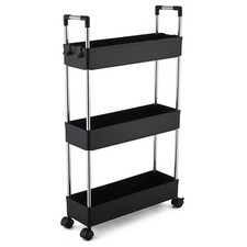 ●【Flexible et largement utilisé】 Le chariot de rangement mince à 3 niveaux est parfaitement conçu pour une utilisation dans des espaces restreints. L'étagère mobile se glisse facilement entre les placards, les cuisines, les salles de bains, les garages, les buanderies, les bureaux, les dortoirs, les bibliothèques ou entre les laveuses et les sécheuses. Facile à stocker et à transporter. Taille: 13 x 40 x 61 cm. 【Durable et stable】 Le chariot de stockage est fait de plastique de haute qualité et de poteaux en acier inoxydable. 4 rouleaux universels verrouillables et la conception de la poignée facilitent le glissement et l'arrêt de manière stable à tous les endroits que vous souhaitez. Cela permet d'optimiser au maximum l'utilisation de l'espace.