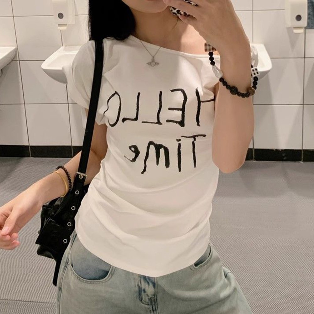 T-shirt femme manches courtes épaules dénudées avec imprimé lettre pour vaca