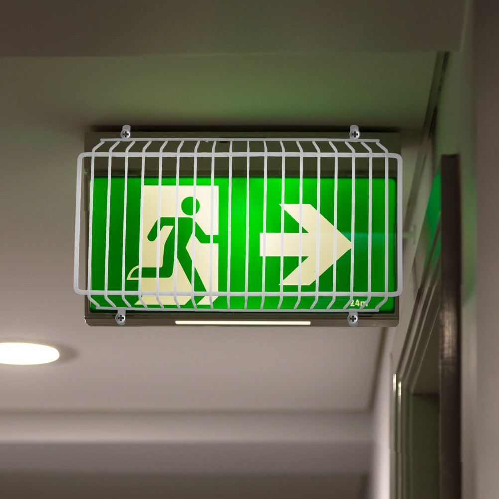 L'installation de la cage lumineuse du panneau de sortie est un processus simple. Panneau de sortie de secours suspendu, lumière de secours, lumière de secours. Panneau de sortie de secours, cage de protection en fil métallique, panneau de.