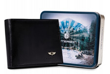 Portefeuille pour hommes en cuir véritable EXSOOTTI noir fouet ray peau à fer...