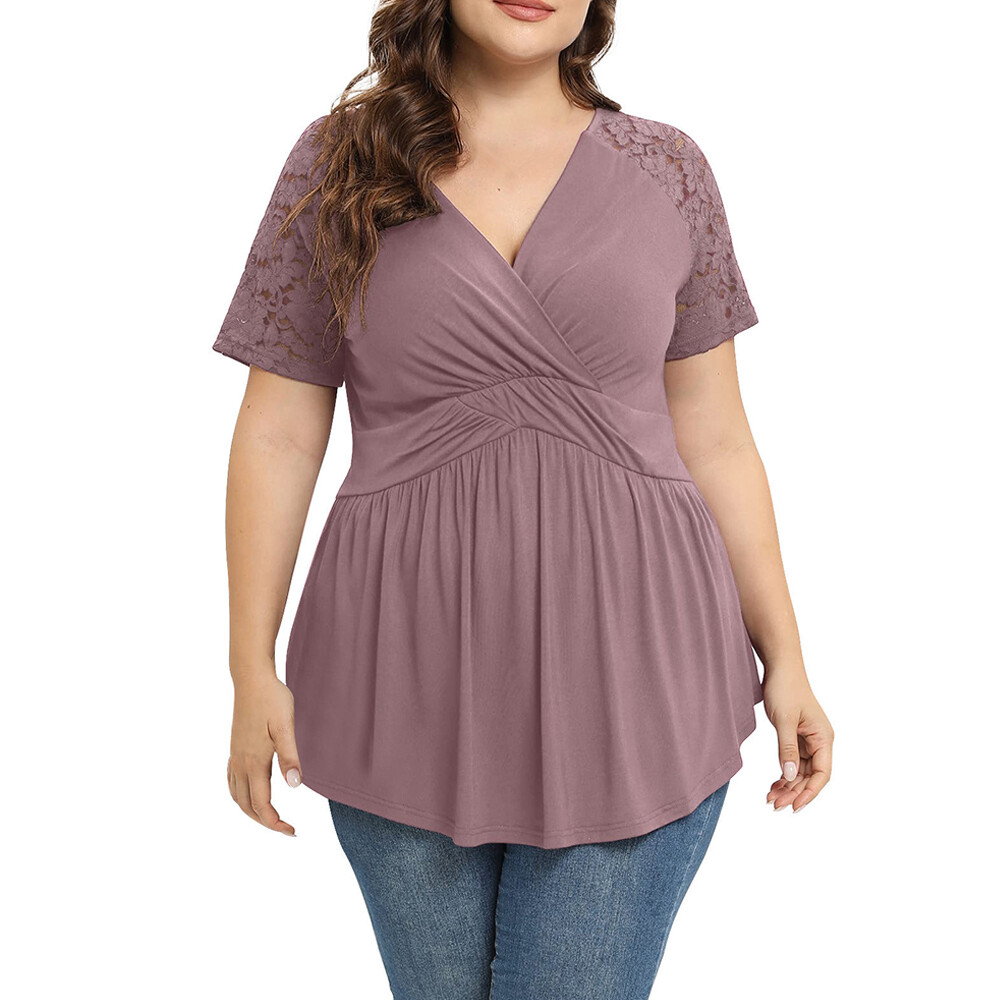 Tunique Plissée Pour Femmes Haut À Manches Courtes T-Shirt Chemisier Pull /
