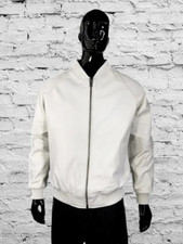 Veste En Cuir Doux Blanc Pour Homme En Cuir D'Agneau Véritable Biker Cafe Racer