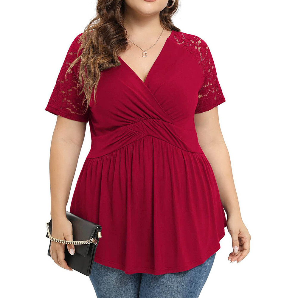 Tunique Plissée Pour Femmes Grande Taille Hauts Pour Dames T-Shirt /