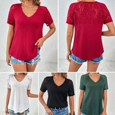 Femmes Col En V T-Shirt Épaule Froide Dames Été Décontracté Plaine Hauts /