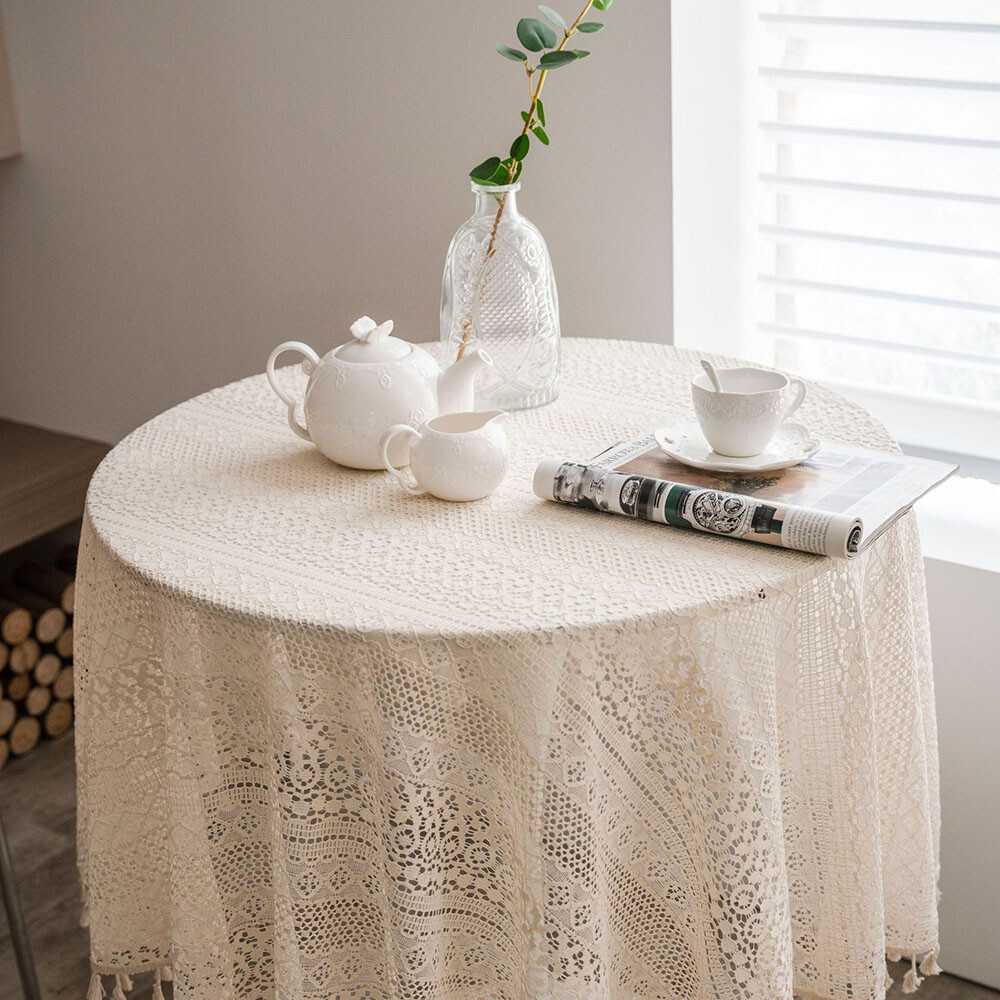 Couverture De Table En Crochet Nappes Rondes Ajourées Style Pastoral Lavable /