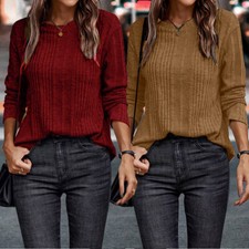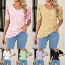 Chemisier Pull Tunique T-Shirts Hauts Tee Mousseline Matin Satin Manches /