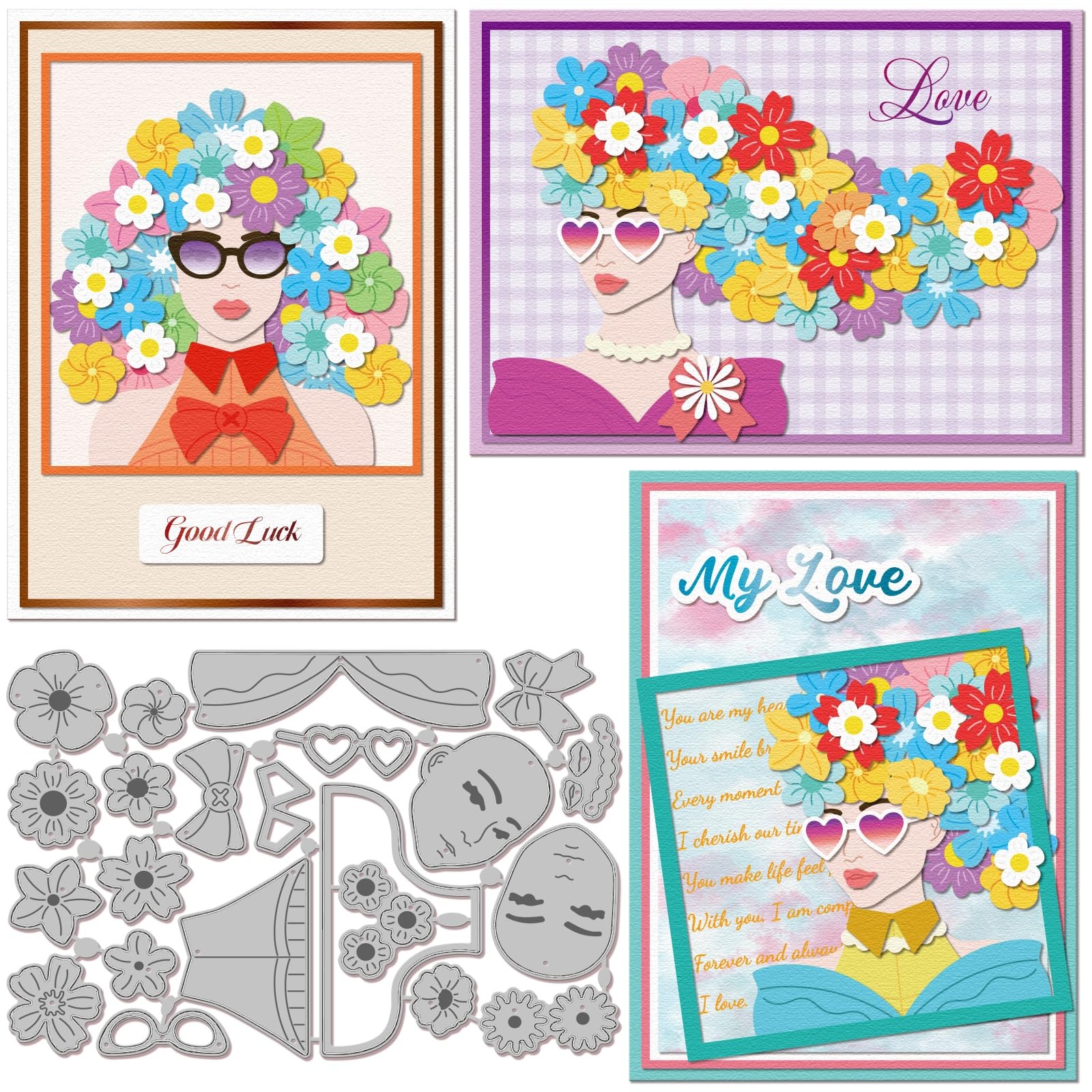 ●L'emballage comprend:Le paquet comprend 1 jeux/22 matrices de découpe à la mode pour femmes, les découpes en métal incluent divers motifs de femmes, fleurs, dame, lunettes de soleil, arc, bijoux, etc.. Ces différents styles de découpes répondront à bon nombre de vos besoins en matière de bricolage. Taille:les pochoirs de découpe en métal mesurent environ 149x105mm /5.9x4.1 pouces. Ces matrices de découpe sont conçues en différentes tailles pour répondre à vos différents besoins.. Matériau de haute qualité:les pochoirs de découpe sont en acier au carbone, qui est résistant et très robuste pour une utilisation à long terme, les matrices de découpe ne sont pas faciles à déformer ou à casser.