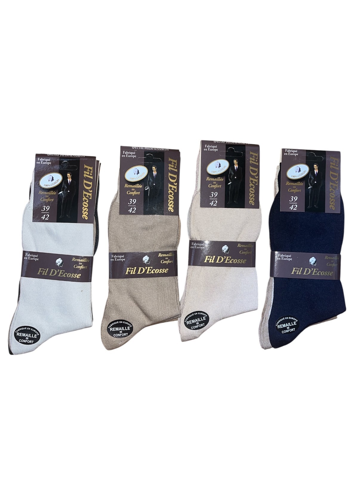 CHAUSSETTES AVEC DES COULEURS UN PEU CLAIRES POUR UN STYLE ELEGANT. LOT DE CHAUSSETTES EN FIL D'ECOSSE. Le fil d'Écosse est a privilégier pour plusieurs raisons. Il est reconnu pour sa durabilité et sa respirabilité, ce qui en fait un matériau idéal pour les chaussettes.