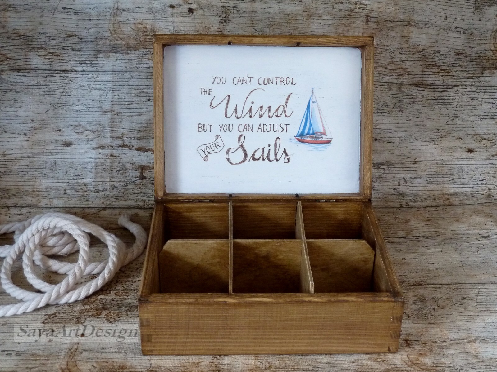 UTILISATION: cadeau parfait pour votre petit ami, frère, mari, papa, amis. Cadeau de fête des pères. Boîte unique en bois solide, fabriquée dans un style nautique, décorée de voiliers. Boîte de montre.