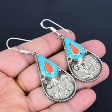 Boucles d'oreilles vintage en argent sterling 925 fait main pierre précieuse ...