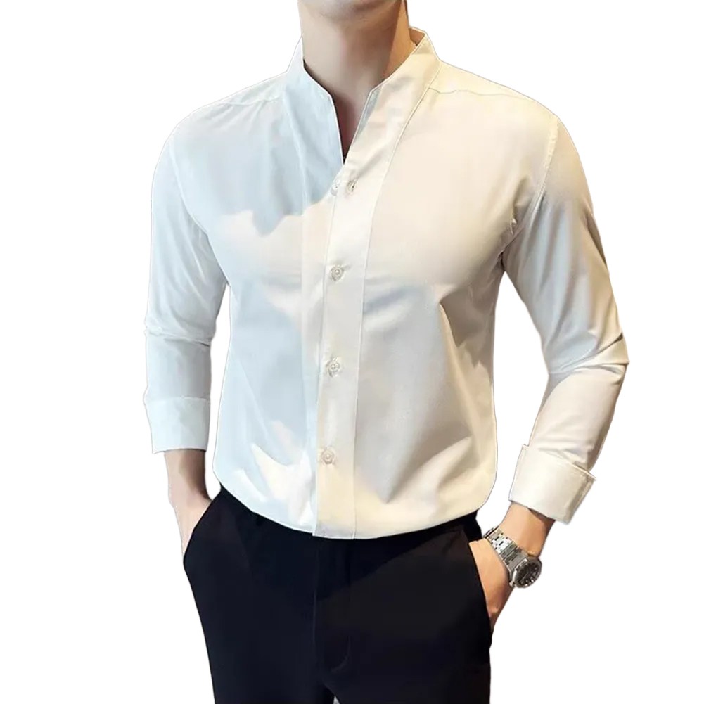 Chemise homme col montant style chinois manches longues coupe slim pour événem