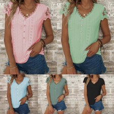 T-Shirt D'été À Col En V Pour Femme À Manches Longues Et Motif Floral. /