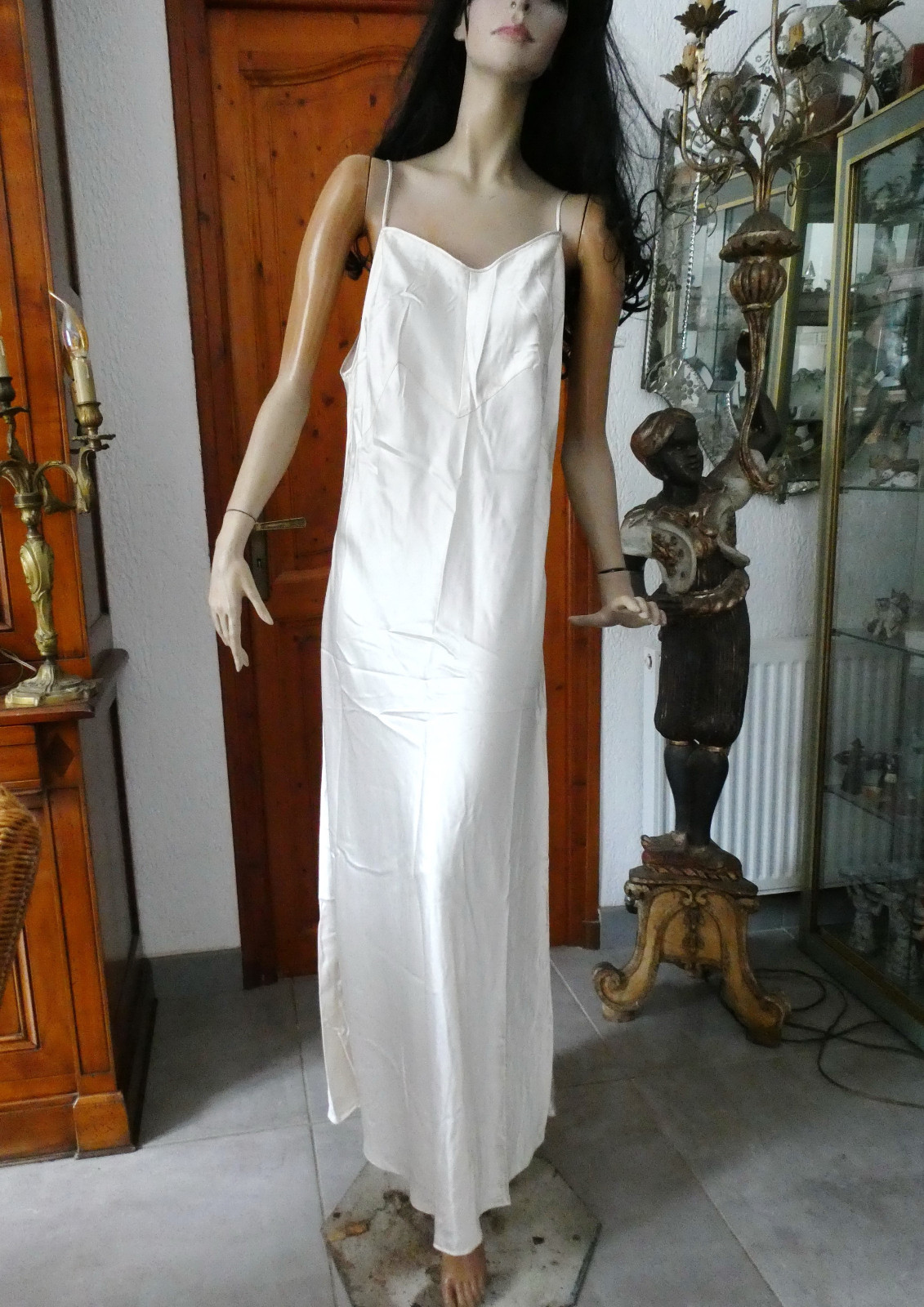 ANCIEN LONG FOND DE ROBE. sous robe de mariée. puis part en s'évasant. tour de poitrine max : 57 X 2 cm. hauteur prise de dessous les bras jusqu'au au sol .