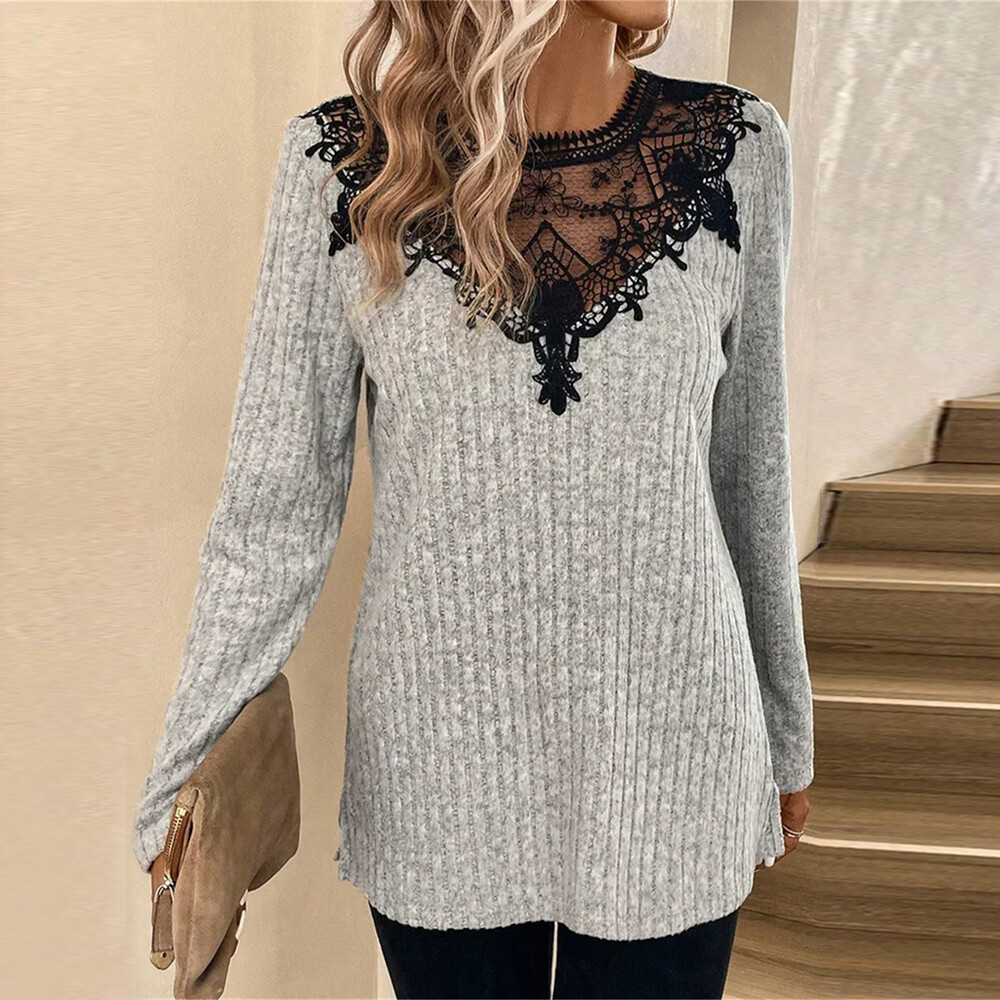 T-Shirt Pull T-Shirts Tops Tunique Dentelle Pull Tricoté Femme Sweat-Shirt - /