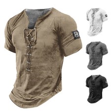 T-Shirt À Manches Courtes Pour Hommes Henley Henley Coton Causal Mince /