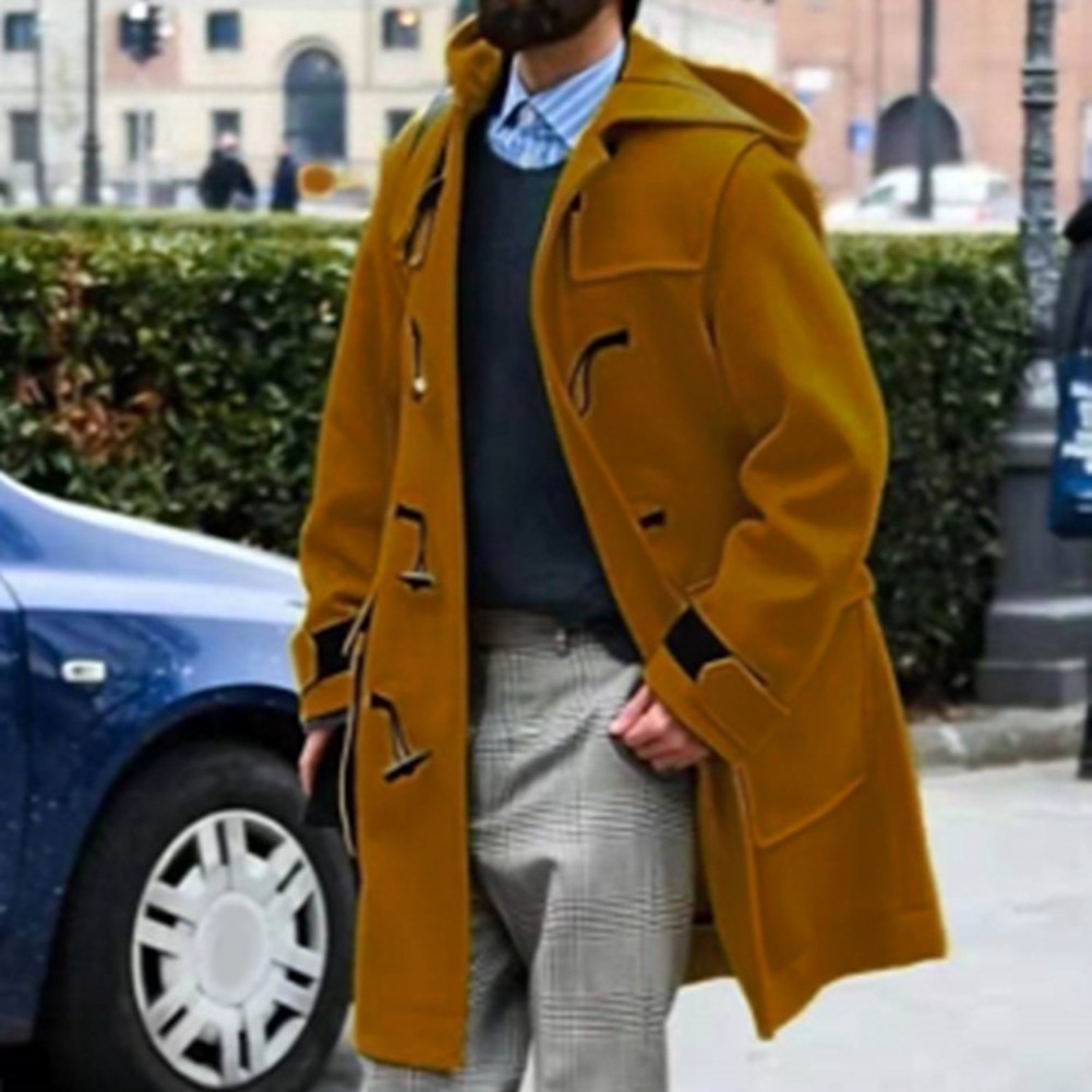 Manteau en laine à capuche pour homme veste épaissie fermeture boucle décontr