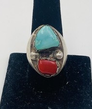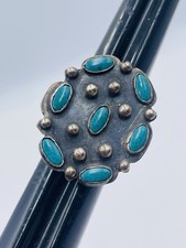 Vintage Navajo Argent Sterling Bleu Turquoise Grand Homme Taille Bague 10