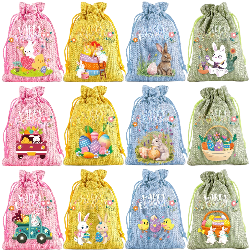 Sacs lapin de Pâques fermeture à cordon tissu léger pochettes cadeaux de fêt