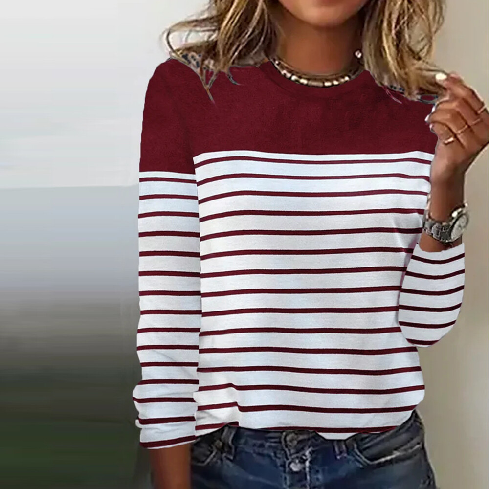 Femmes T-Shirt À Manches Longues T-Shirt Dames Mode Travail Col Rond Hauts /