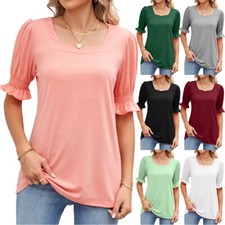 Col Carré Femmes T-Shirts Chemisier T-Shirts Hauts Manches Courtes Lâche /