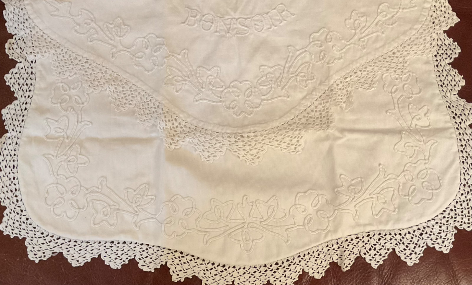ancienne housse de coussin en coton blanc brodé