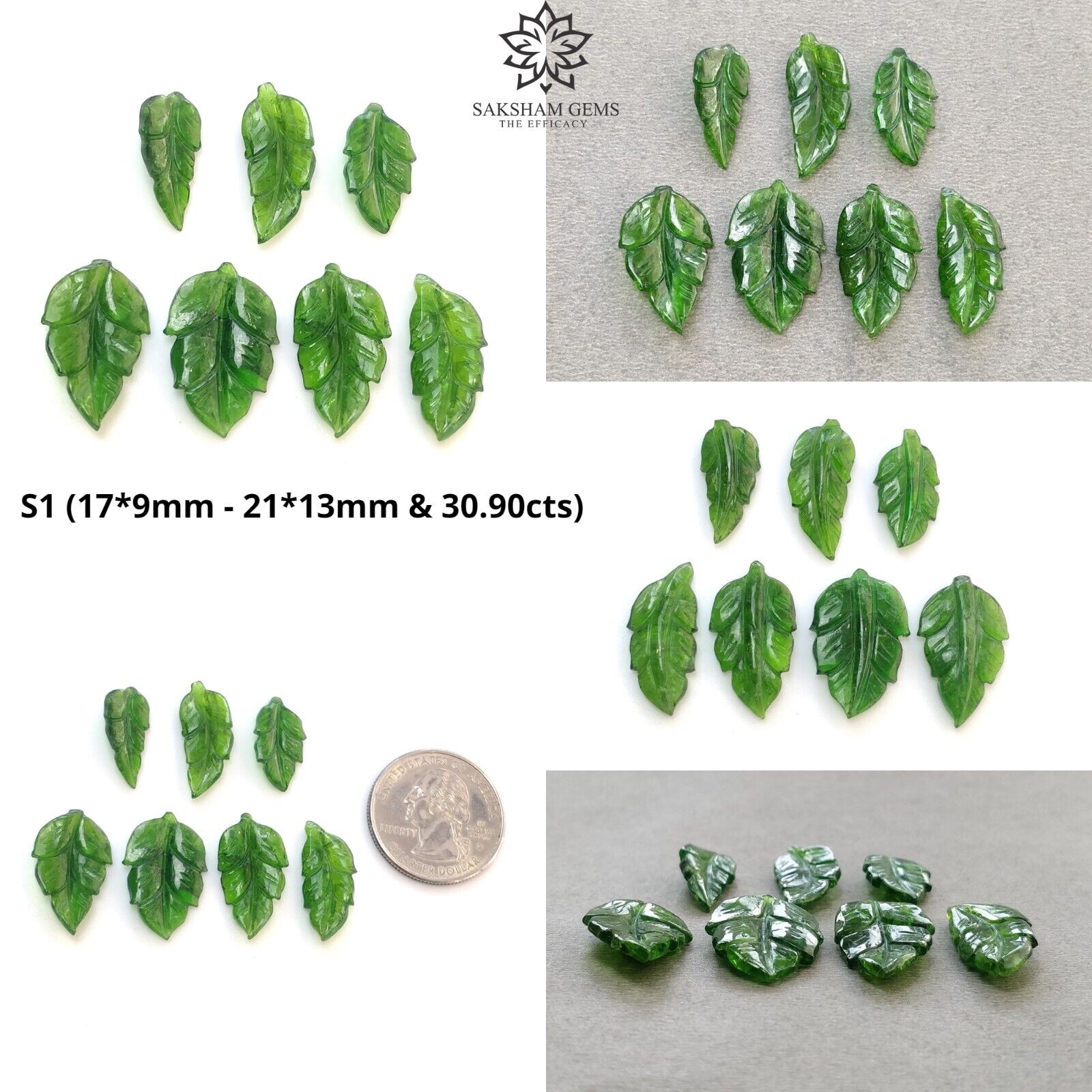 Ensemble de 7 pièces de feuilles sculptées à la main en chrome vert naturel...