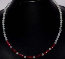 Collier 18" perles de corail en peau d'ange en perles de riz (collection AA)