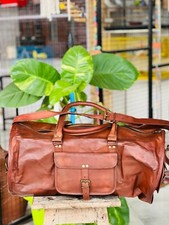 Grand sac de sport de voyage vintage en cuir pour homme marron neuf