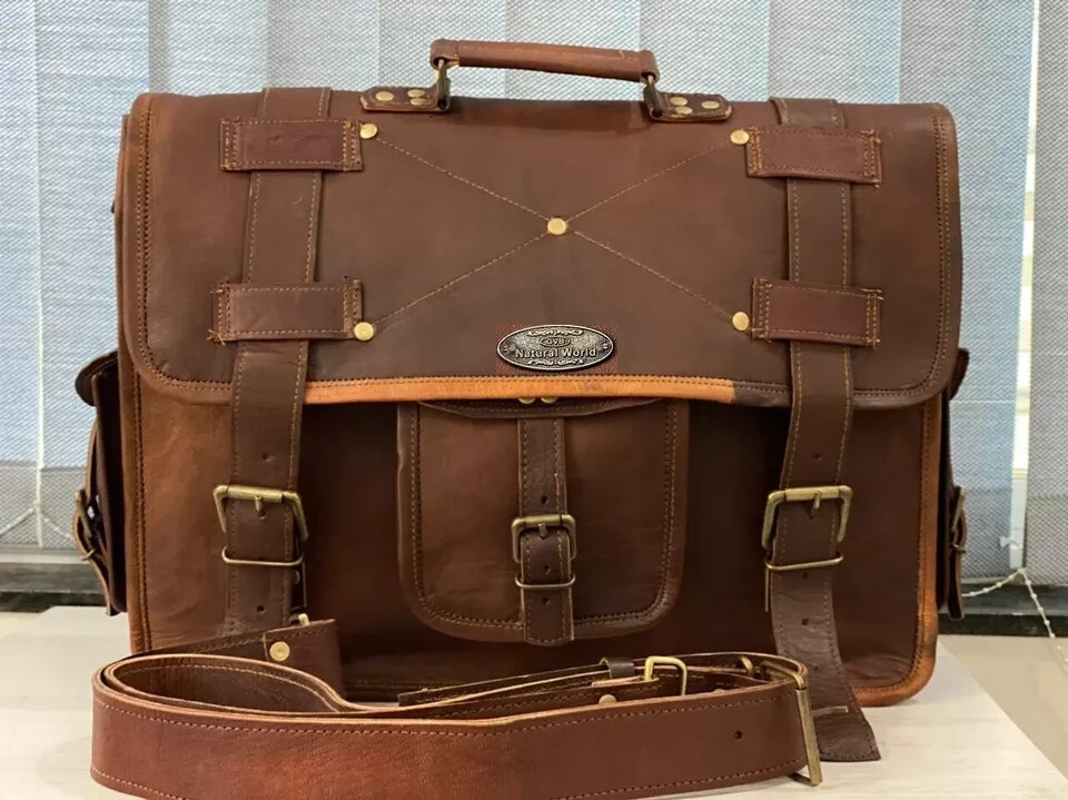 Porte-documents en cuir pour hommes, sacoche à bandoulière Messenger Fit extr...