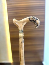 Ancienne canne bâton de marche en bois de créateur manche victorien rond en l...