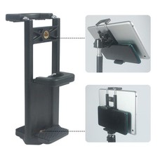 Compatibilité polyvalente : Ce support de trépied innovant est conçu pour accueillir aussi bien les smartphones que les tablettes. Il est doté d'une pince double face avec une petite plage de serrage de 5,5 à 9,5 cm et une grande plage de serrage de 12 à 19 cm, garantissant une fixation sécurisée pour divers appareils.
