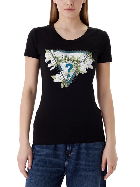 T-Shirt Femme Manches Courtes GUESS Camélia Triangle T-Shirt JETBLA NOIR 422436