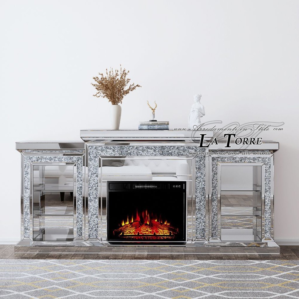 Un seul élément d'ameublement qui contient style, fonctionnalité et confort: Ce Meuble TV miroir avec cheminée électrique intégrée c'est la solution parfaite pour ceux qui souhaitent créer un salon élégant et accueillant. Les superficies miroir de haute qualité Hé détails en Swarovski brillant ils apportent luminosité et raffinement, tandis que le foyer électrique fonctionnel réchauffe réellement l'environnement, créant une atmosphère unique et relaxante. 2) Vérifiez l'état de l'emballage, et si des dommages sont détectés ou suspectés, notez-le sur la facture du transporteur (dans le cas d'un PDA, prenez des photos de preuve) en ajoutant les mots au-dessus de votre signature. "J'accepte sous réserve pour" par ex. emballage cassé, abîmé, non conforme, mouillé, cabossé... ou manque de palett.
