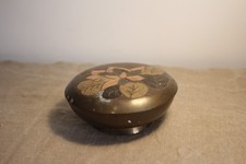 Boite ronde ancienne en laiton et marqueterie d'os - Pilulier tabatière