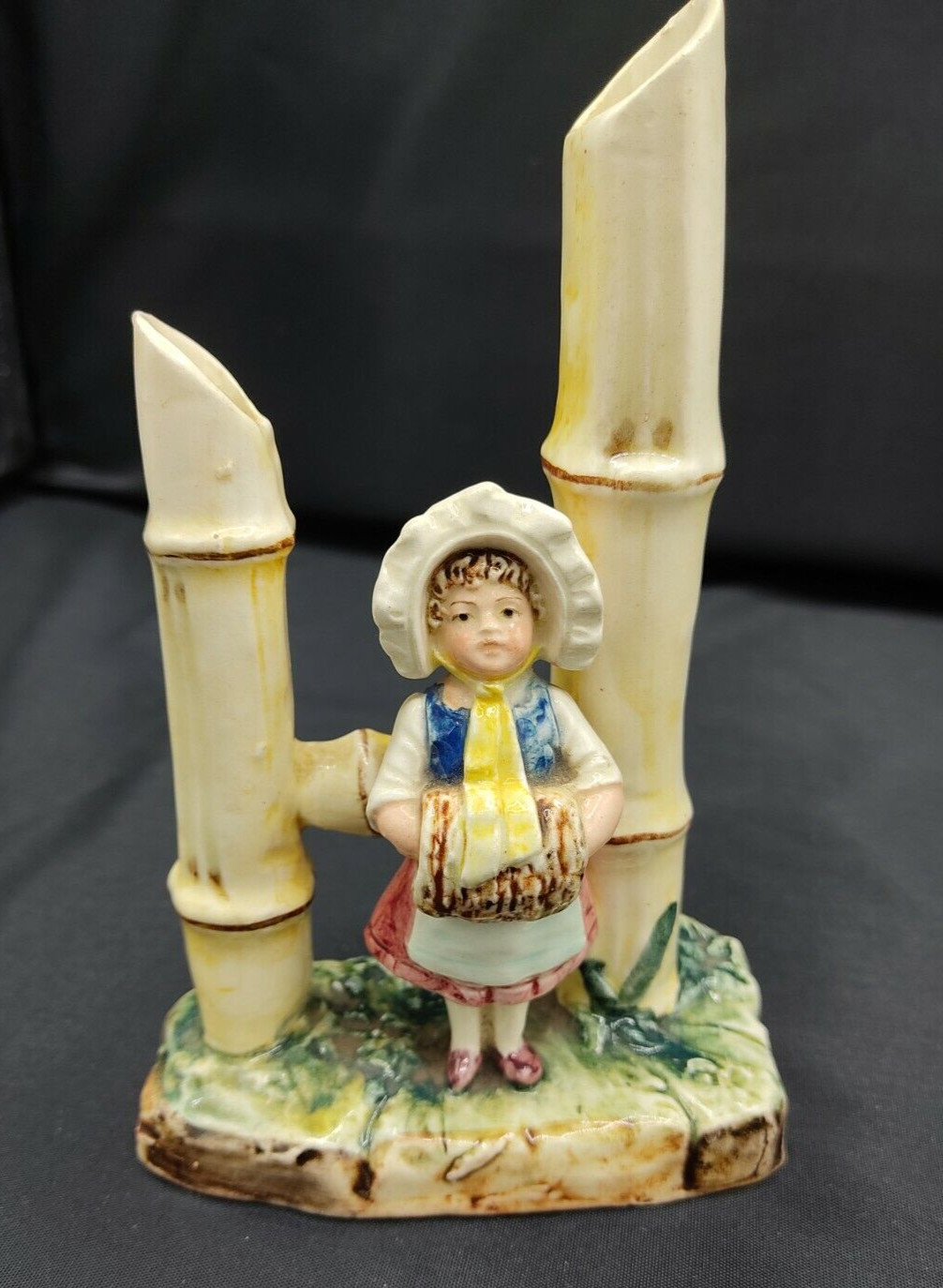 Statuette ancienne en faïence soliflore Jeune fille. Hauteur 15 cm