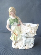 ANCIENNE STATUETTE EN CERAMIQUE. JEUNE FILLE EN TRAIN DE LIRE.