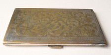Boite étui à cigarettes en métal argenté et doré Ancien Art Deco vers 1930